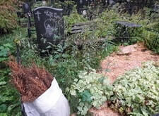 Исходное состояние: Покосившийся памятник, сорняки, неаккуратный вид могилы