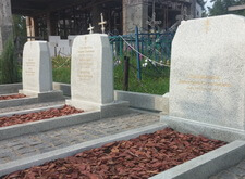 Мемориальный комплекс из светло-серого гранита на церковной земле
