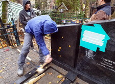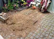 В первую очередь мы начали с подготовки надёжного основания для будущего памятника. Для этого мы раскопали необходимую часть места захоронения.