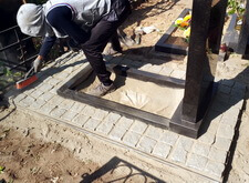 Ремонт покосившего памятника и оформление цветника брусчаткой