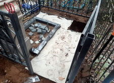 Достаточно сложный и срочный заказ по реставрации старого гранитного памятника. В целом, нам предстояло за неделю полностью благоустроить место захоронения, так как клиент очень сильно спешил с ремонтом. Приехав на могилу в начале дня, мы застали её в следующем состоянии: памятник порядком обветшал, с его вершины пропал православный крест, некоторые надписи затёрлись настолько, что стали нечитаемыми, оградка проржавела, а сам участок порядком порос сорной травой.