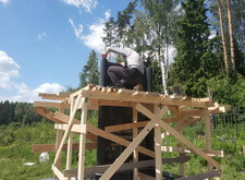 Начинается процесс монтажа. Первый его этап – создание фундамента. Для этого мы вкрутили сваи и для создания дополнительной прочности связали их арматурой.
