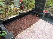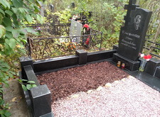 Гранит помыли, цветы в цветнике убрали, закрыли землю корой, могилу почистили от опавшей листвы. Могила снова в полном порядке.