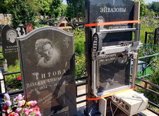 Замена двух портретов на памятнике прямо на кладбище