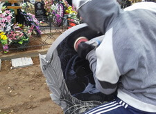 Гравировка портрета на кладбище,